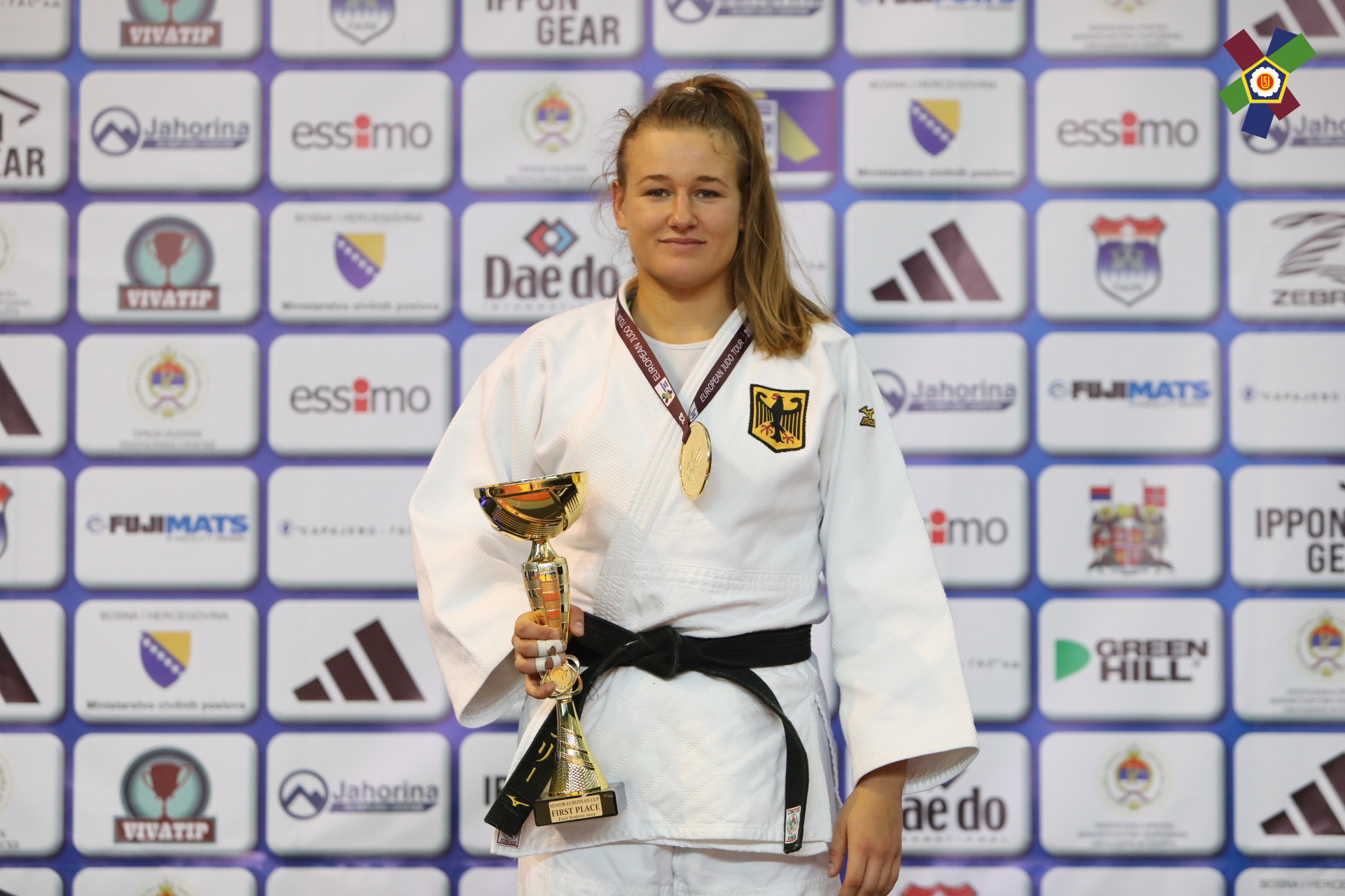 Julie Hölterhoff von der HTG Bad Homburg holt sich beim European Cup der Frauen und Männer in Sarajevo in der Gewichtsklasse bis 78 kg die Goldmedaille!